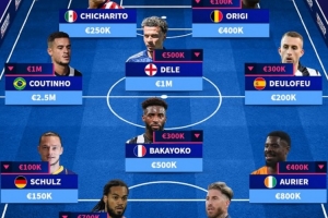 中场:库蒂尼奥(250万)、阿里(100万)、巴卡约科(50万)、德乌洛费乌(20万)