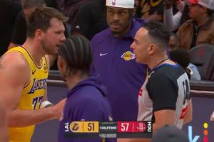 东契奇然后走到主裁判威廉姆斯身旁继续吵,范德彪也跟了过来
